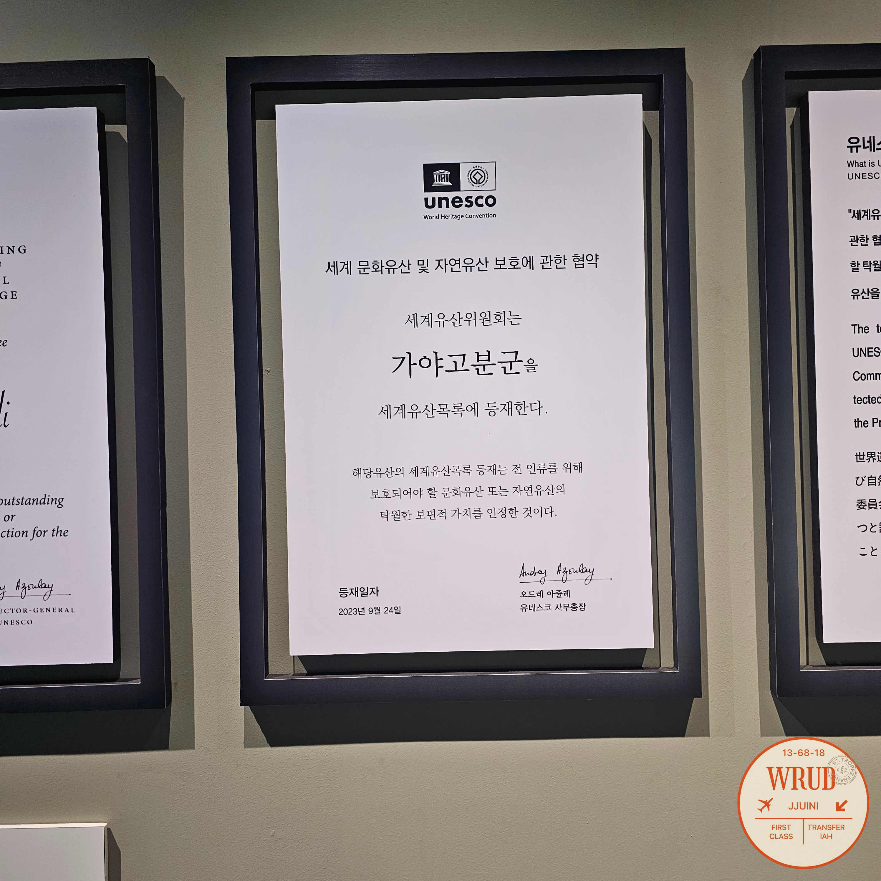 실제로 세계유산목록에 등재한다는 등재 협약서가 있습니다.