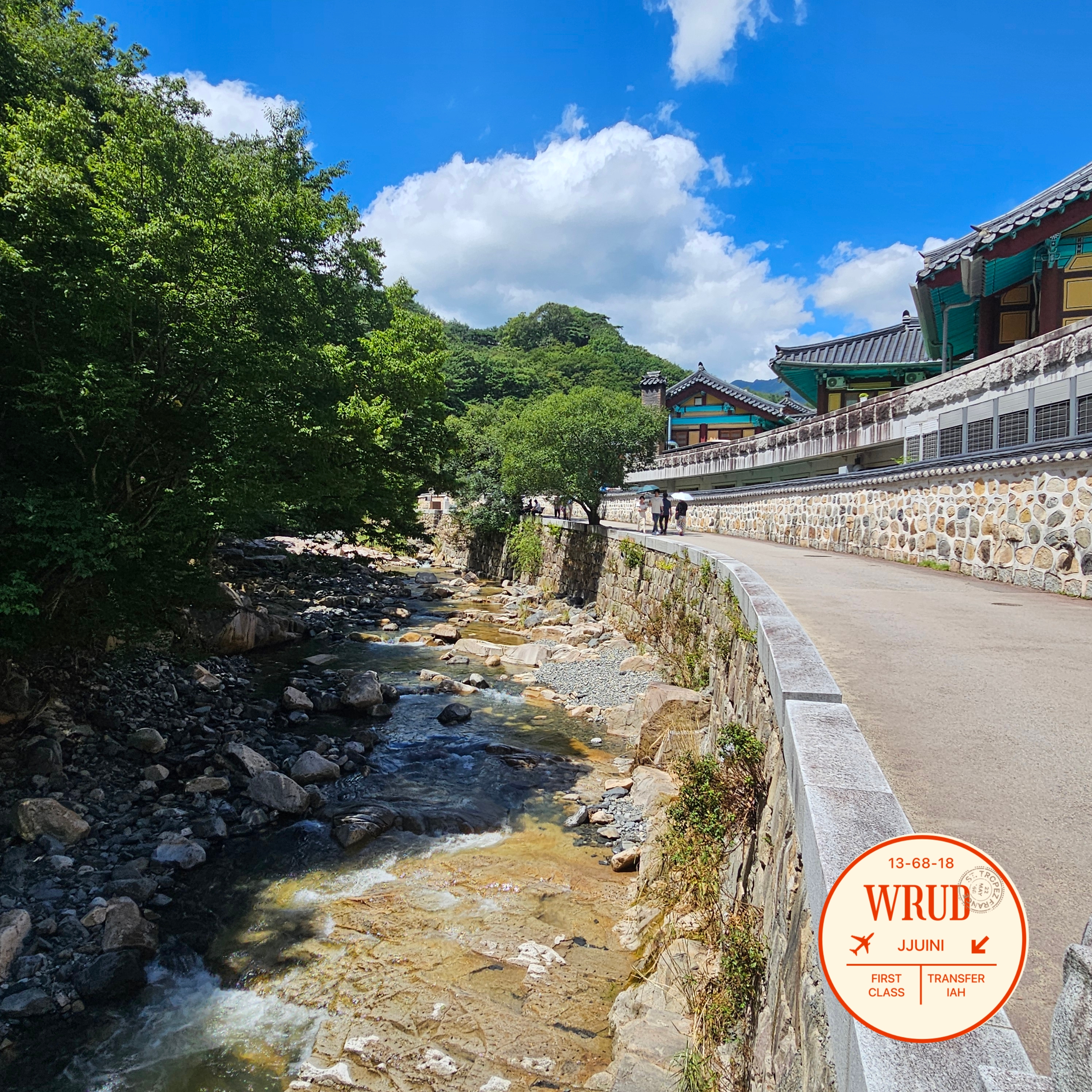 바로 옆에 계곡물이 흘러가는걸 보실 수 있는데, 실제 내려가서 놀 수 있는곳은 아니니 풍경으로 감상만 해주세요~
