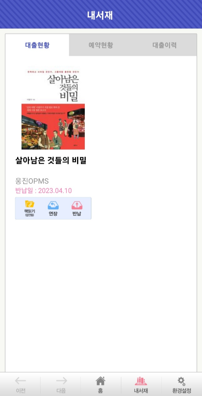대출 현황 뿐만 아니라, 예약한 책들... 그리고 그 전에 대출했던 이력이 있던 책들 목록을 한눈에 보기 쉽게 정렬이 되어 있어