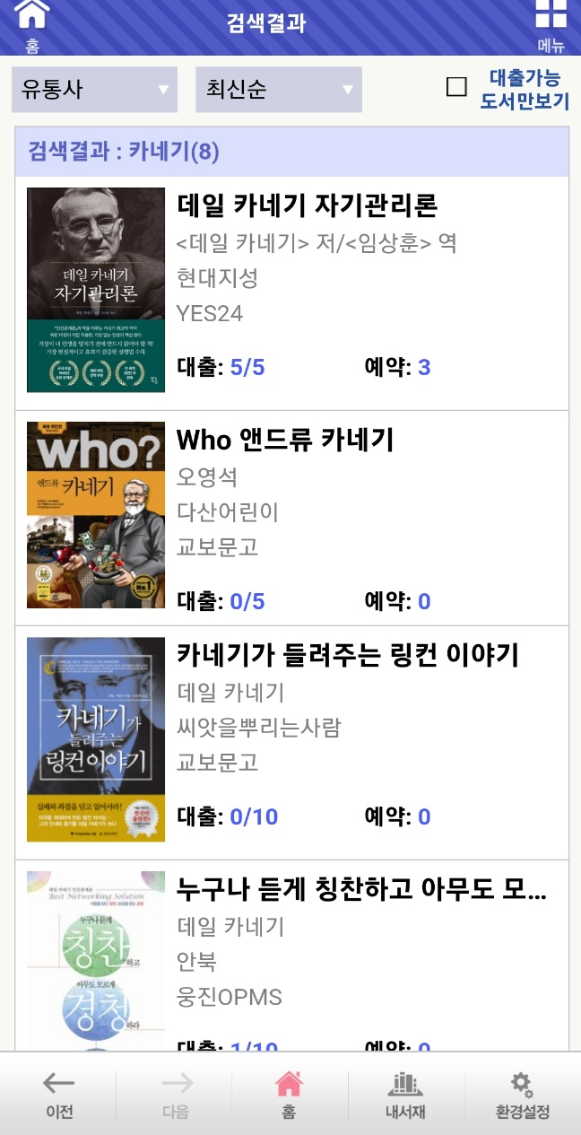 모든 책이 다 전자책으로 대여가 되지 않기 때문에..